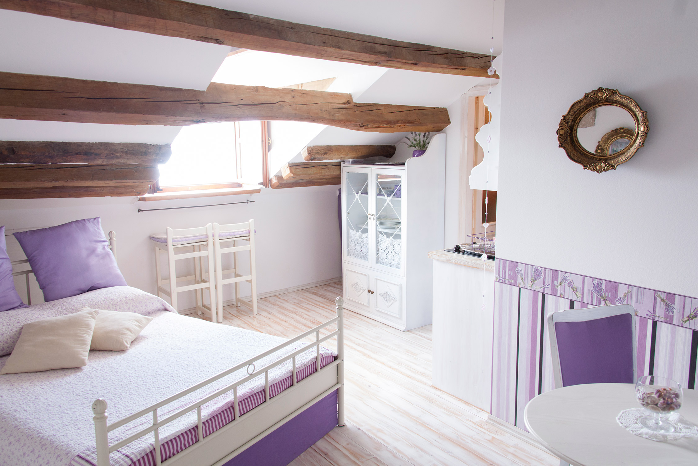 Lavender is a Mediterranean flower that can be found all over the island Krk. Apartment Lavanda is an ode to this magnificent flower. The color, way the light moves in the apartment, smell of lavender are the grate reasons to enjoy your holiday fully. Situated in the attic, huge window gives you a great view to the sea, land and whole cost of Baška.