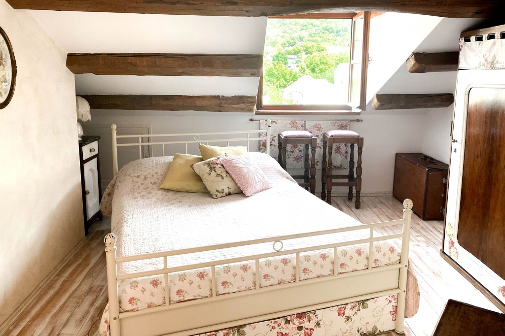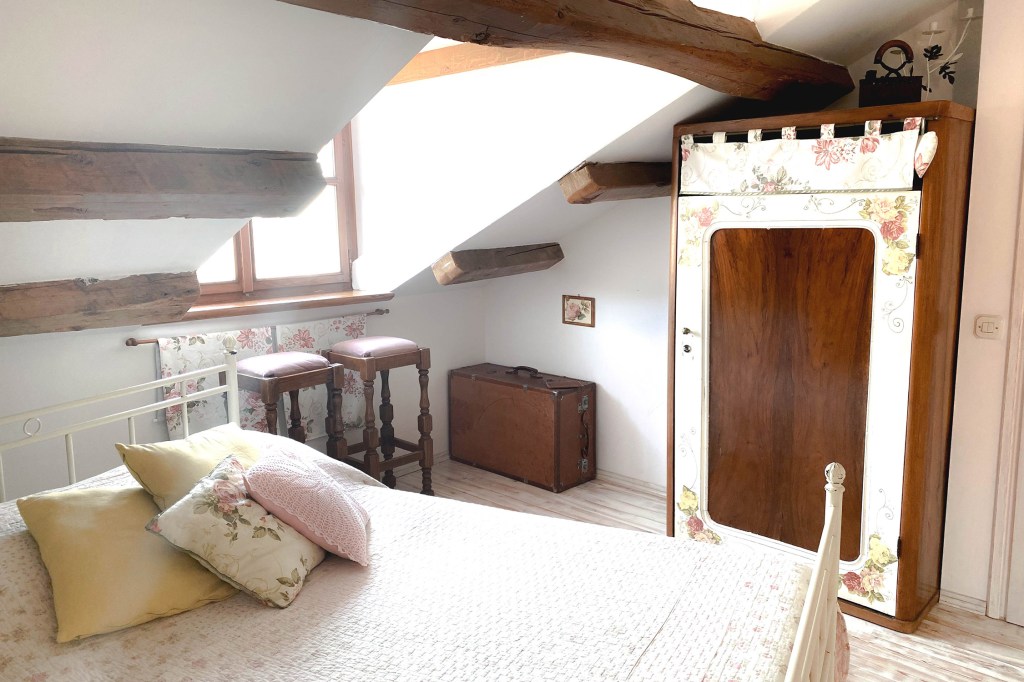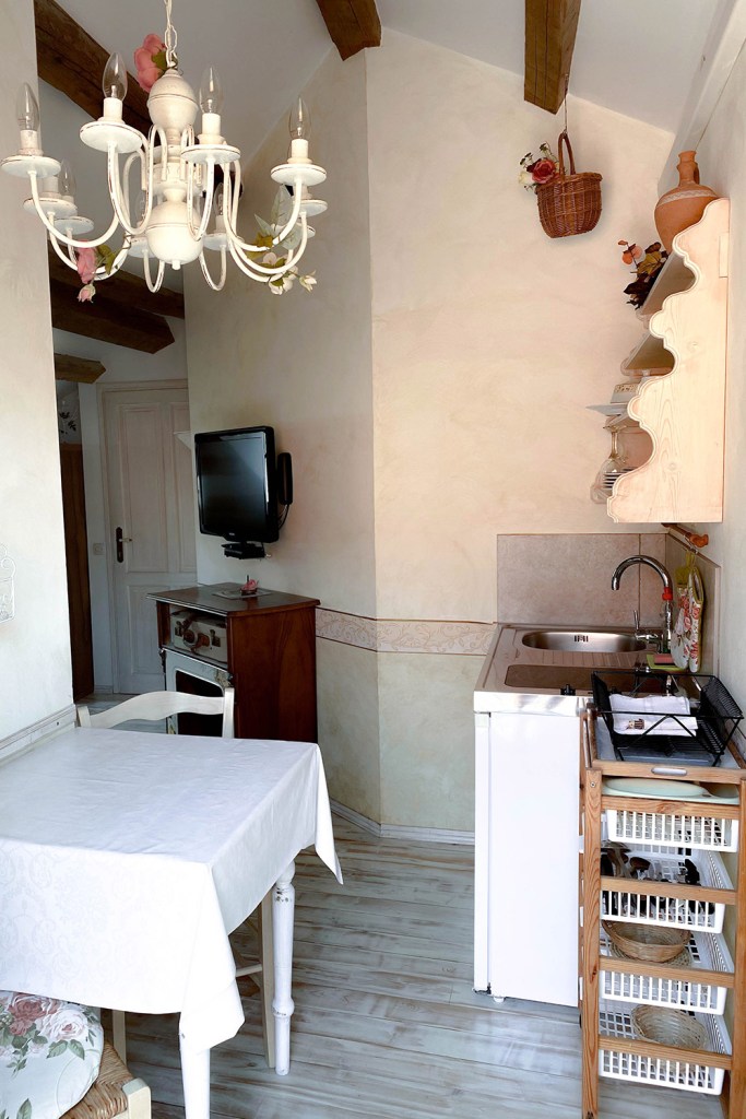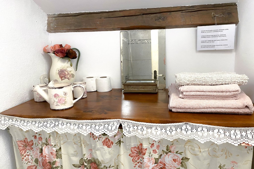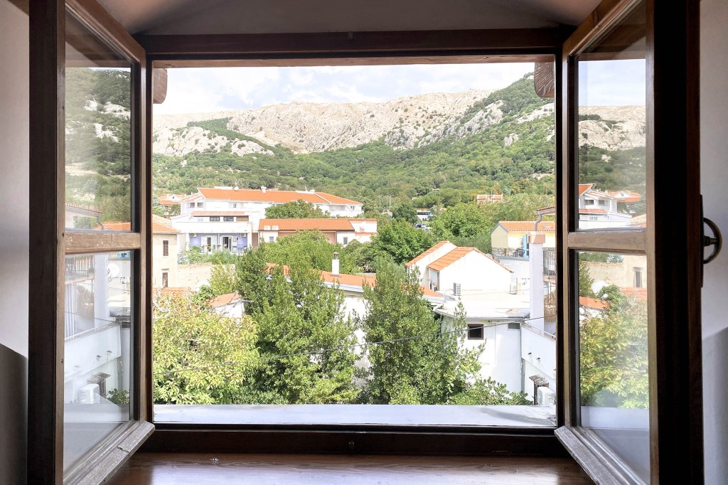 Situated in the attic of the house, apartment Rosa is soft as it’s name. Decorated in the flowerly elegant way, with lots of details and care. Big, light window provides amazing views over Baška’s legendary landscapes and top of the mountain called “Plato Moon”. Small balcony let’s the light in, so you can enjoy this sweet light room.